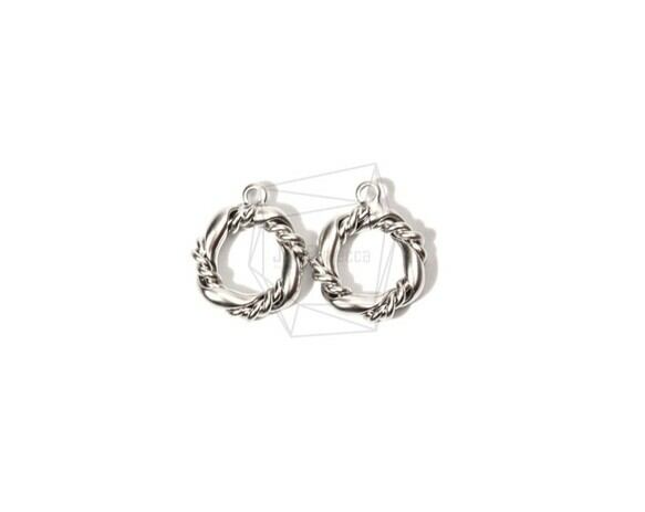 PDT-1564-MR/2PCS/Wreath Pendant/12mm X 15mm/Matte Rhodium Plated Over Brass