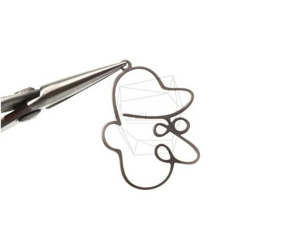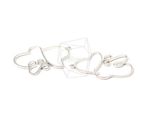 PDT-1565-MR/2PCS/Face Pendant/26mm X 33mm/Matte Rhodium Plated Over Brass