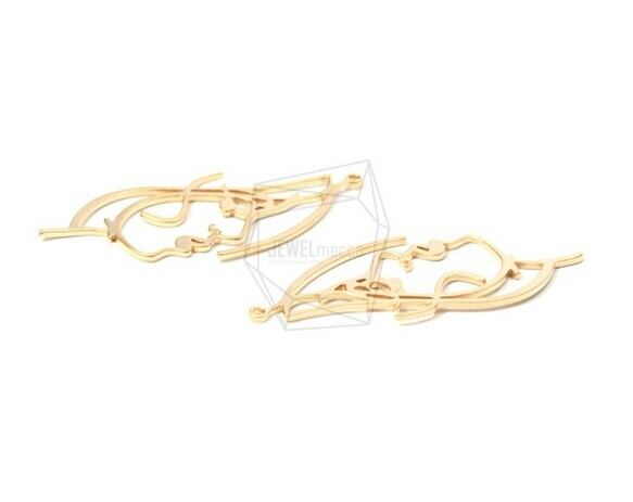 PDT-1569-MG/2PCS/Abstract Face Pendant/20mm X 50mm/Matte Gold Plated Over Brass