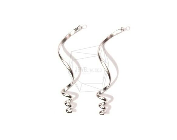 PDT-1574-MR/2PCS/Wavy Bar Pendant/15mm X 45mm/Matte Rhodium Plated Over Brass