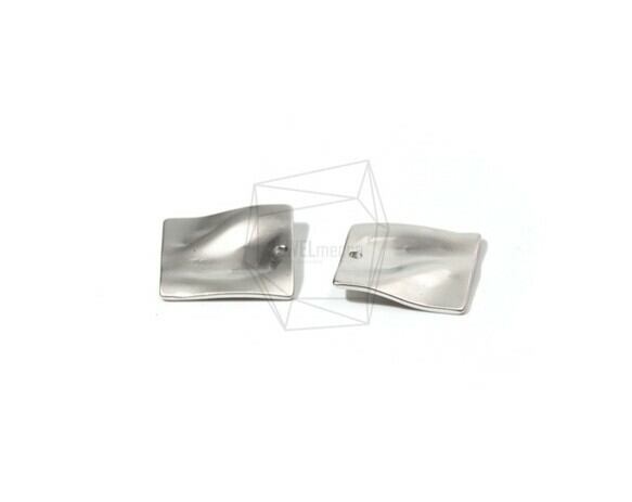 PDT-1577-MR/2PCS/Square Crumple Pendant/15mm X 15mm/Matte Rhodium Plated Over Brass