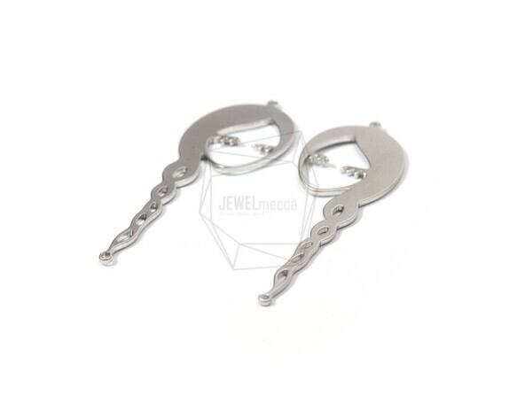 PDT-1579-MR/2PCS/Girl's Face With Long Pigtails Pendant/15mm X 50mm/Matte Rhodium Plated Over Brass