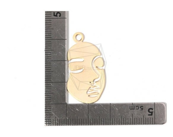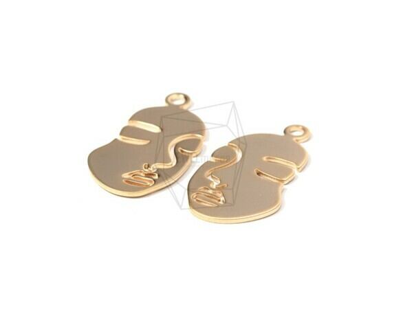 PDT-1587-MG/2PCS/Face Pendant/20mm X 32mm/Matte Gold Plated Over Brass