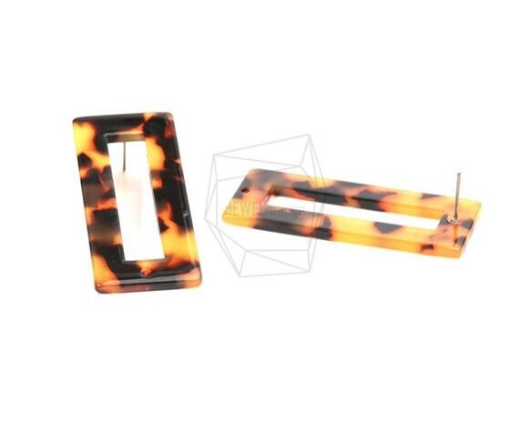 ERG-802-G/2PCS/Rectangular Celluloid Earring Post/20mm X 50mm/Mix Celluloid/ Titanium post