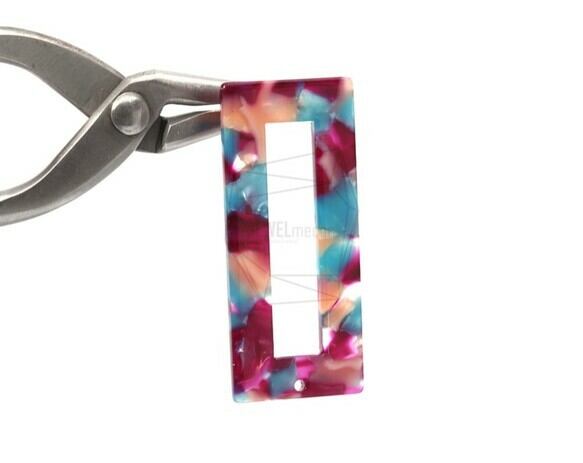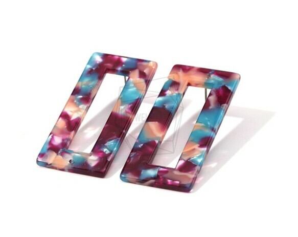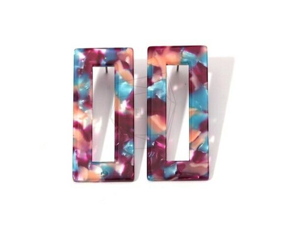 ERG-824-G/2PCS/Rectangular Celluloid Earring Post/20mm X 50mm/Mix Celluloid/ Titanium post