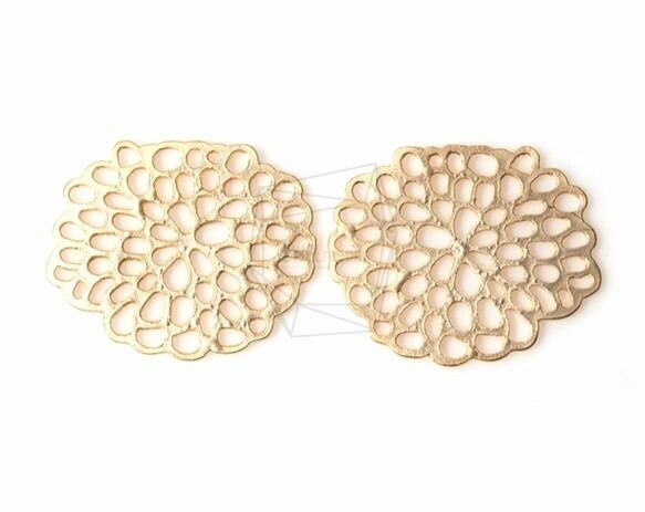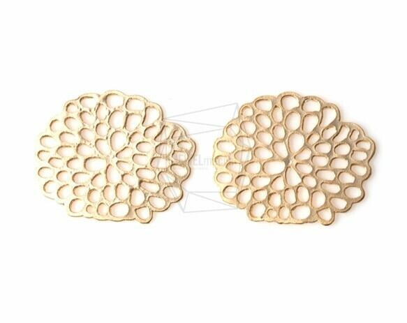 PDT-994-MG/2PCS/Flat Flower Outline Pendant/27mm x 33m/Matte Gold Plated Over Brass