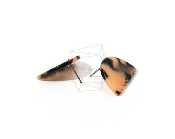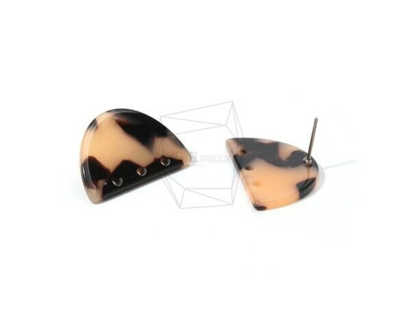 ERG-821-G/2PCS/Semicircle Post Earring/30mm X 17mm/Mix Celluloid/ Titanium post