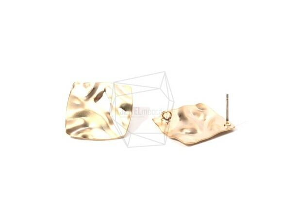ERG-752-MG/2PCS/Rhombus Post Earring/25mm X 27mm/Matte Gold Plated Over Brass , Titanium Post