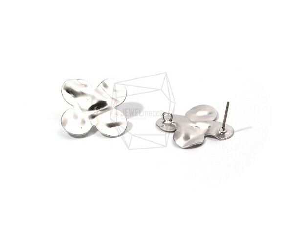 ERG-753-MR/2PCS/Four Leaf Clover Post Earring/25mm X 25mm/Matte Rhodium Plated Over Brass , Titanium Post