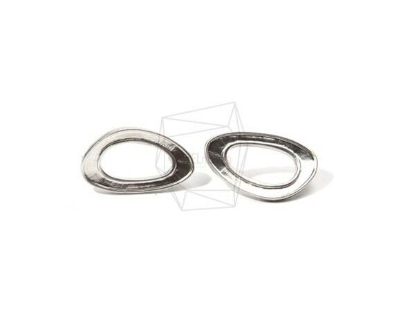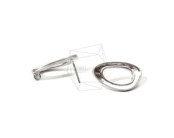 ERG-757-MR/2PCS/Oval Epoxy Resin Frame Post Earring/15mm X 22mm/Matte Rhodium Plated Over Brass , Titanium Post