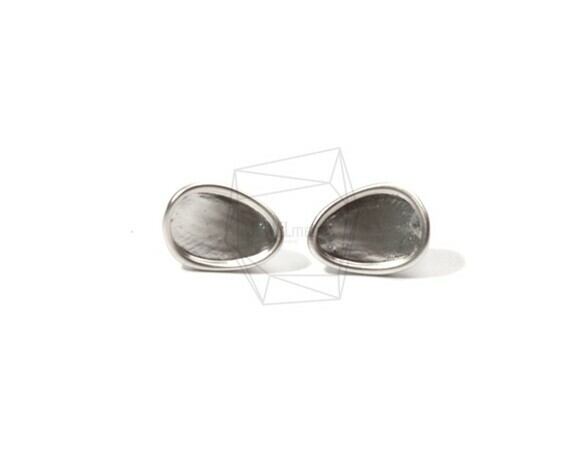 ERG-760-MR/2PCS/Tear Drop Epoxy Resin Frame Post Earring/10mm X 12mm/Matte Rhodium Plated Over Brass , Titanium Post