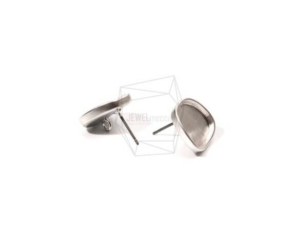ERG-761-MR/2PCS/Tear Drop Epoxy Resin Frame Post Earring/15mm X 15mm/Matte Rhodium Plated Over Brass , Titanium Post