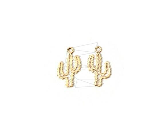 PDT-1593-MG/2PCS/Cactus Pendant/10mm X 18mm/Matte Gold Plated Over Brass