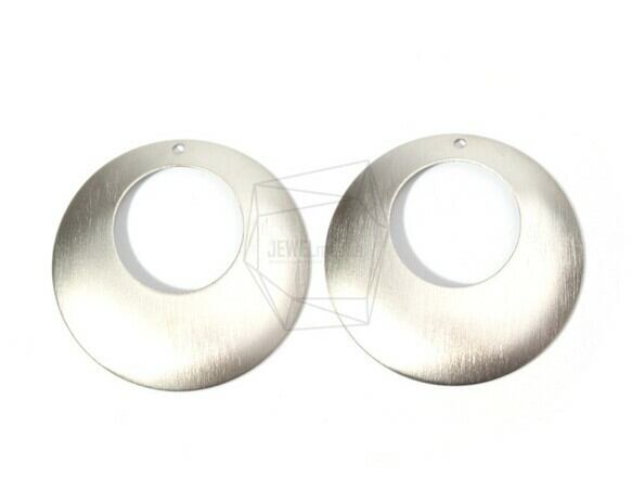 PDT-1607-MR/2PCS/Round brushed Texture Pendant/40mm X 40mm/Matte Rhodium Plated Over Iron
