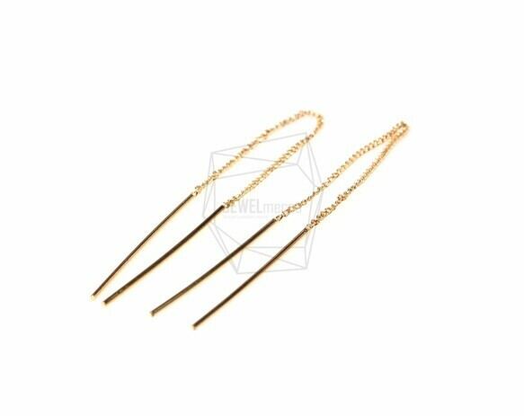 ERG-255-G/4PCS/Chain With Dual Bar Earring/10.3cm/Gold Plated Over Brass