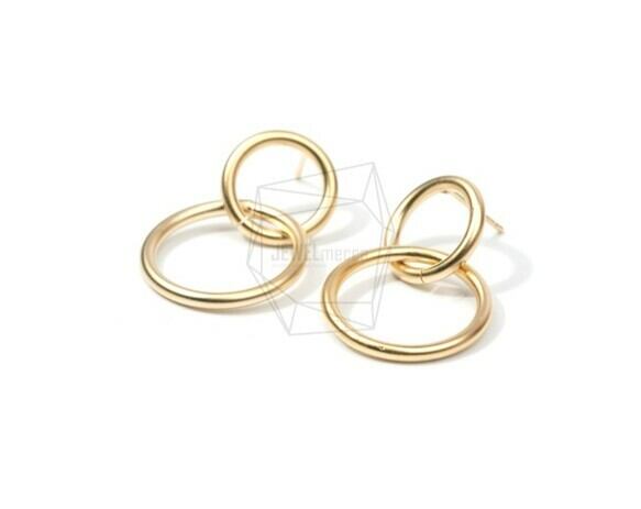 ERG-658-MG/80PCS/Two Linked rings Earring/20mm X 30mm/Matte Gold Plated Over Brass