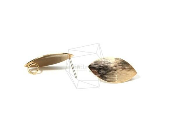 ERG-772-G/2PCS/Leaf Shape Brushed Texture Post Earring/10mm X 22mm/Gold Plated Over Brass , Titanium Post