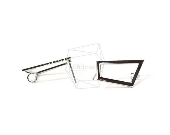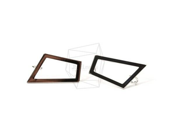 ERG-777-R/2PCS/Geometric Outline Post Earring/15mm X 25mm/Rhodium Plated Over Brass , Titanium Post