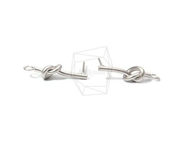 ERG-778-MR/2PCS/Knot Post Earring/15mm X 25mm/Matte Rhodium Plated Over Brass , Titanium Post