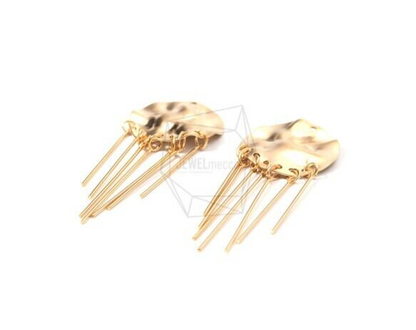 ERG-779-MG/2PCS/Hammered Disk Bar Earring Charm/25mm X 55mm/Matte Gold Plated Over Brass