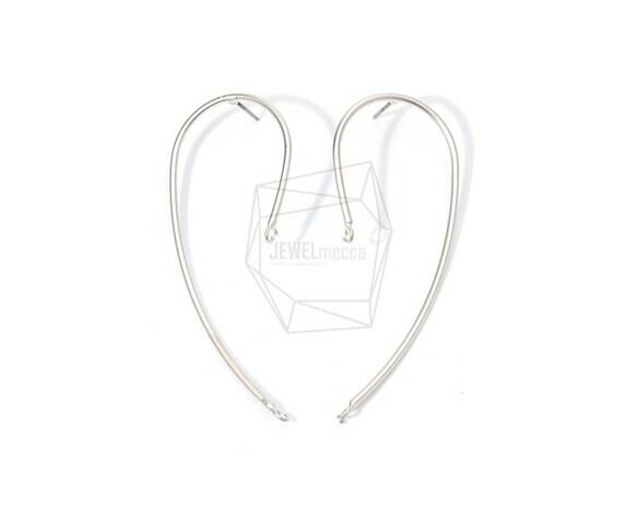 ERG-784-MR/2PCS/Long Curved Wire Post Earring/30mm X 60mm/Matte Rhodium Plated Over Brass , Titanium Post