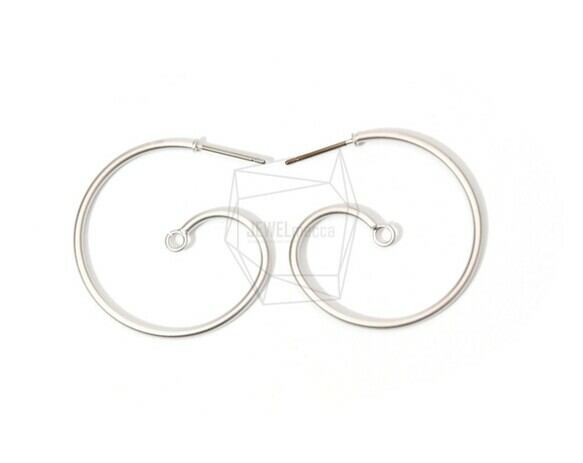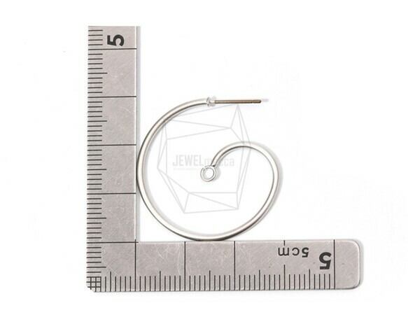 ERG-786-MR/2PCS/Curly Wire Post Earring/30mm X 30mm/Matte Rhodium Plated Over Brass , Titanium Post