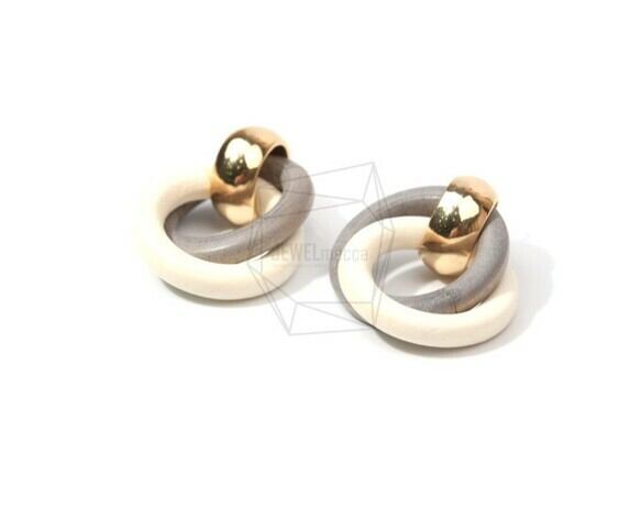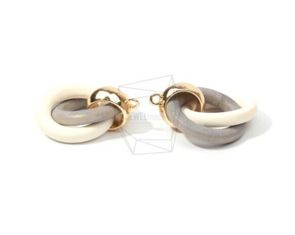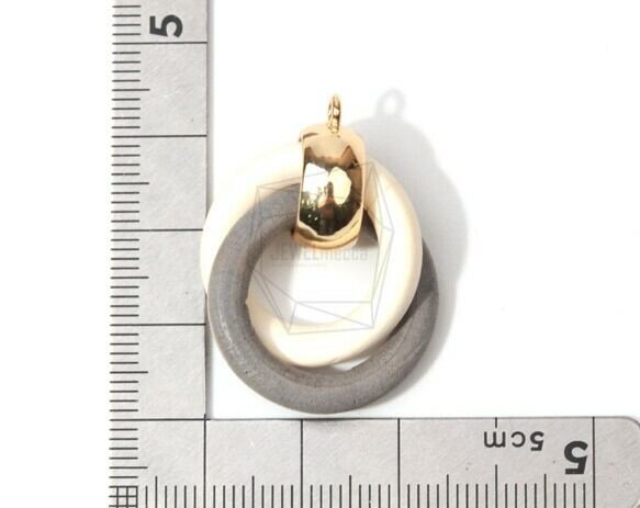 BSC-484-G/2pcs/Double ring Wooden Charm /25mm x 33mm/Handmade wooden round beads