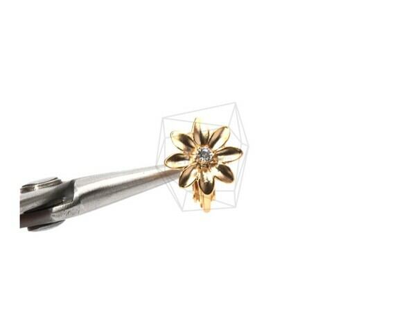 ERG-796-MG/2PCS/Sunflower Clip-On Earring/12mm X 12mm/Matte Gold Plated Over Brass,CZ