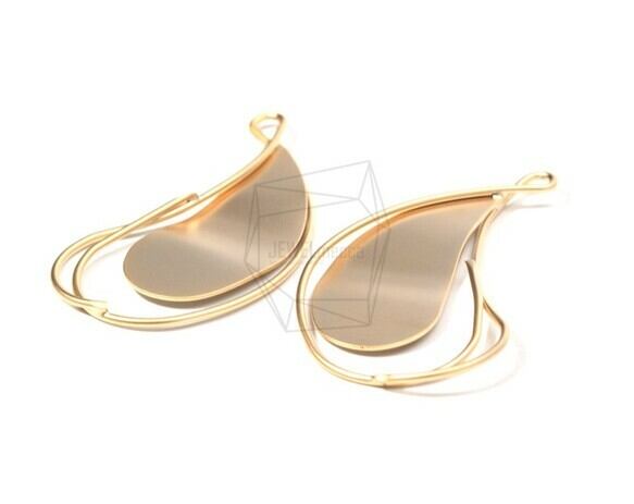 ERG-801-MG/2PCS/Long Tear Drop Earring Charm/30mm X 55mm/Matte Gold Plated Over Brass