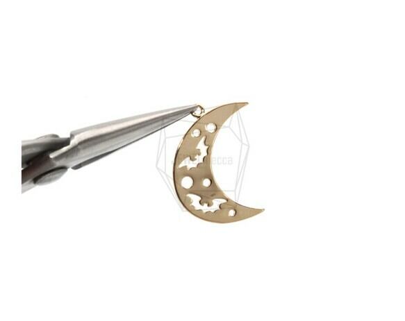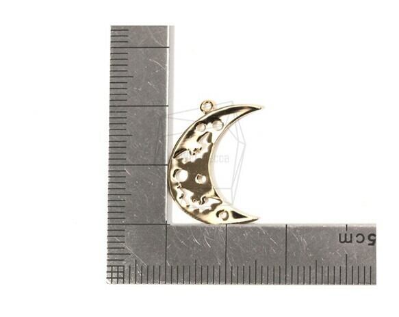 PDT-1602-G/2PCS/Crescent Moon Pendant/16mm X 20mm/Gold Plated Over Brass