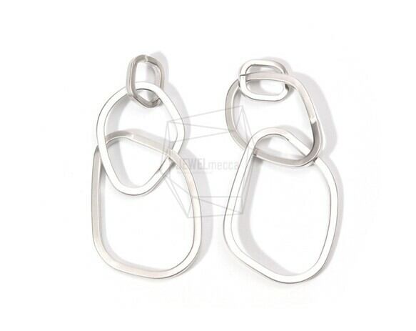 PDT-1606-MR/2PCS/Triple Squares Pendant/27mm X 65mm/Matte Rhodium Plated Over Brass