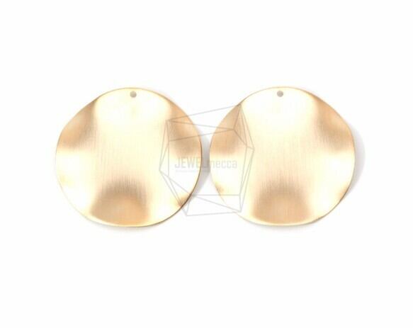 PDT-1257-MG/2PCS/Brush Textured Round Wave Pendant/40mm X 40mm/Matte Gold Plated Over Iron