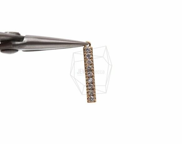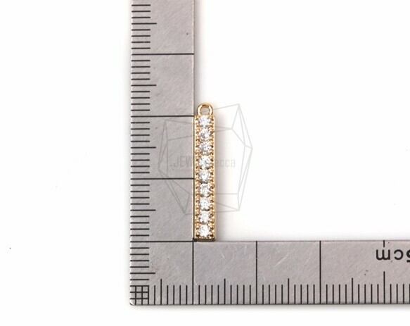 PDT-1221-G/2Pcs-Cubic Zirconia Setting Bar pendant / 3.5mm x 22mm/Gold Plated over brass