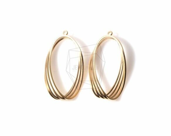 PDT-1057-MG/2PCS/Triple Stack Oval Pendant/15mm x 38mm/Matte Gold Plated over Brass