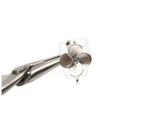 ERG-794-MR/2PCS/Flower Clip-On Earring/15mm X 17mm/Matte Rhodium Plated Over Brass
