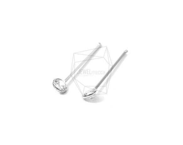 PDT-1348-MR/2PCS/Long Vertical Bar With CZ/5mm X 40mm/Matte Rhoium Plated Over Brass , Cubic Zirconia