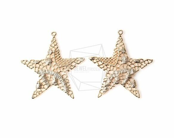 PDT-952-MG/2Pcs-Lace Star Connector/ 35mmx38mm /Matte Gold Plated over brass