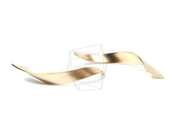 PDT-1430-MG/2PCS/Wavy Bar Earring Charm/20mm X 55mm/Matte Gold Plated Over Brass