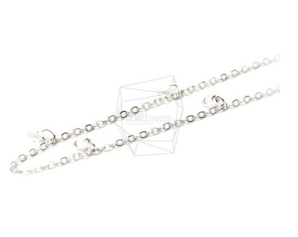 CHN-011-R/1m-235sf,Chain with Cubics,shiny Rhodium plated,Jewelry making,/ 1.6 x 1.8mm/Rhodium Plated over brass,cz