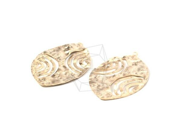 PDT-1610-MG/2PCS/Hammered oval Pendant/30mm x 48mm/Matte Gold Plated over Brass