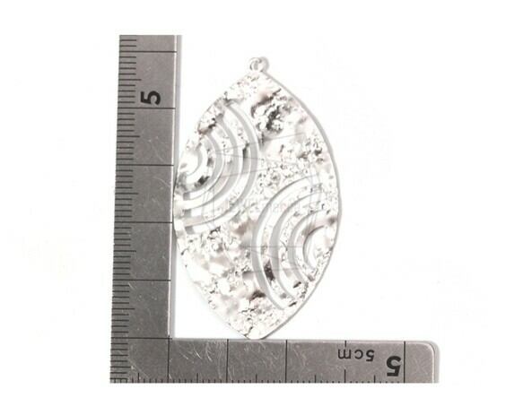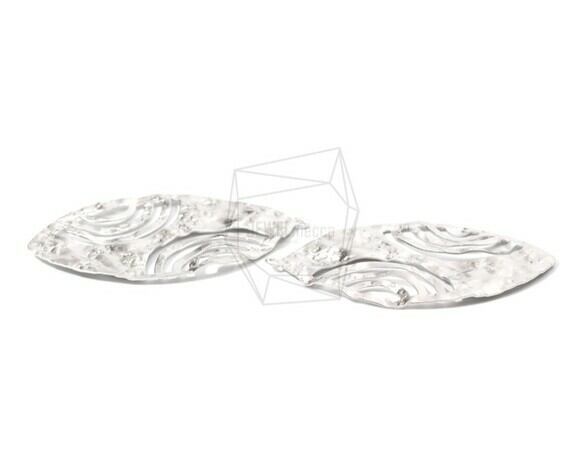 PDT-1610-MR/2PCS/Hammered oval Pendant/30mm x 48mm/Matte Rhodium Plated over Brass