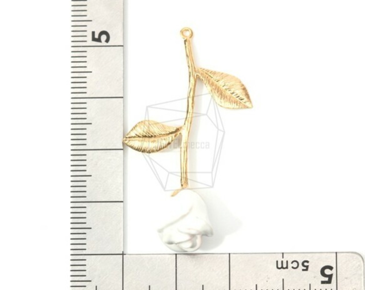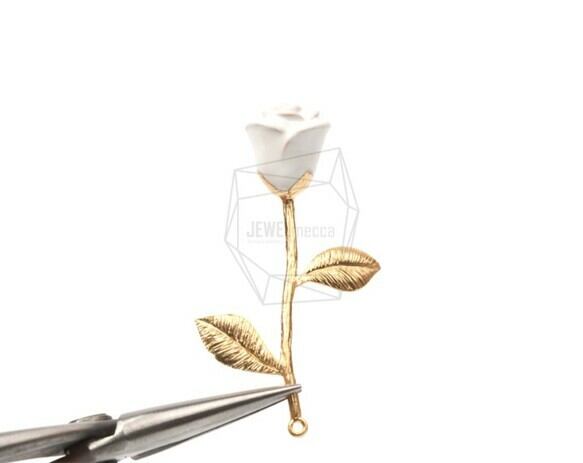 PDT-1317-MG/1PCS/Rose Pendant/White Petal Rose Charm /28mm X 45mm/Matte Gold Plated Over Brass