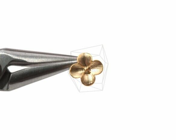 ERG-527-MG/2PCS/Four Leaf Flower Earring Post/10mm x 10mm/Matte Gold Plated over Brass/925 Sterling Silver Post