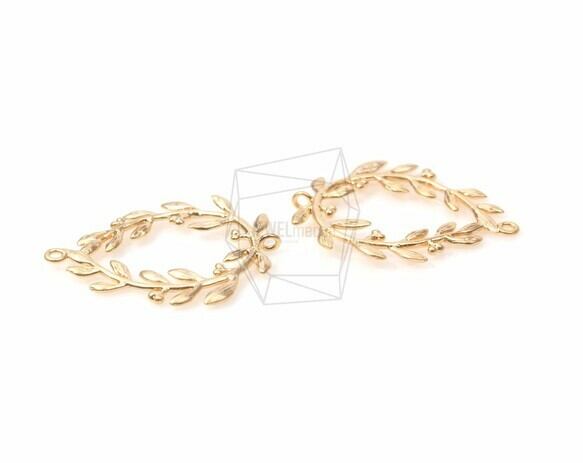PDT-761-MG/4PCS/Tear Drop Wreath Pendant/25mm x 30mm/Matte Gold Plated Over Brass