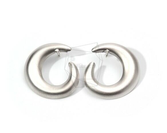 ERG-833-MR/2PCS/Curve Post Earring/30mm X 30mm/Matte Rhodium Plated Over Brass,Titanium Post