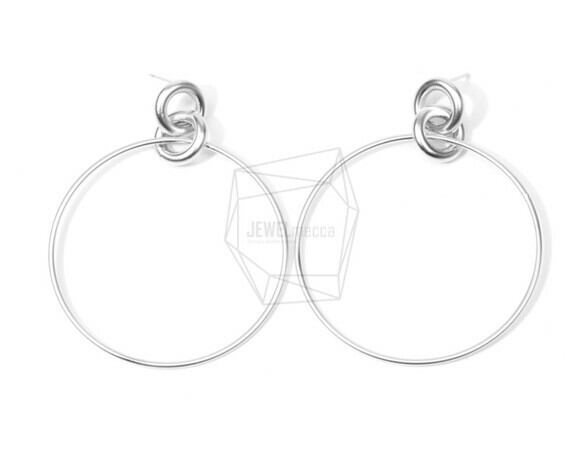 ERG-660-MR/2PCS/Linked Rings Post Earring/55mm X 70mm/Matte Rhodium Plated Over Brass