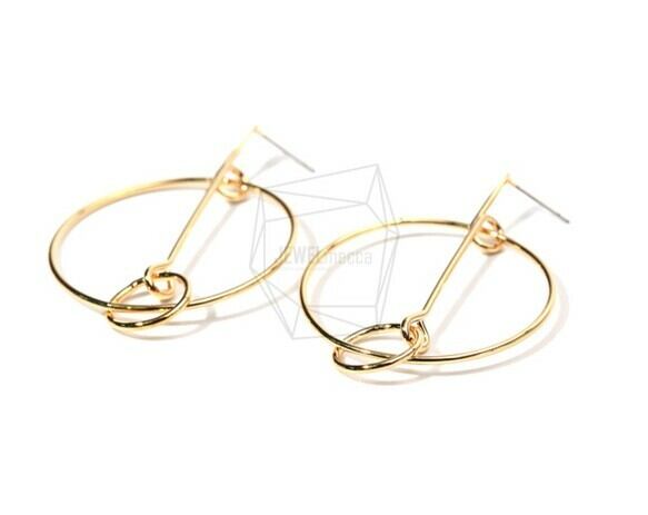 ERG-519-G/2PCS/Double Ring Earring Post/50mm x 50mm/Gold over Brass/Titanium post