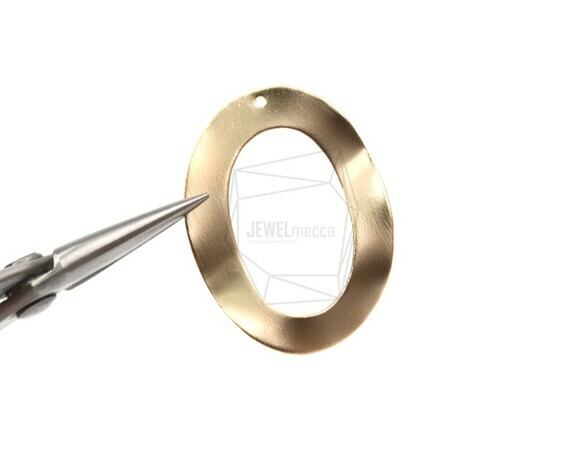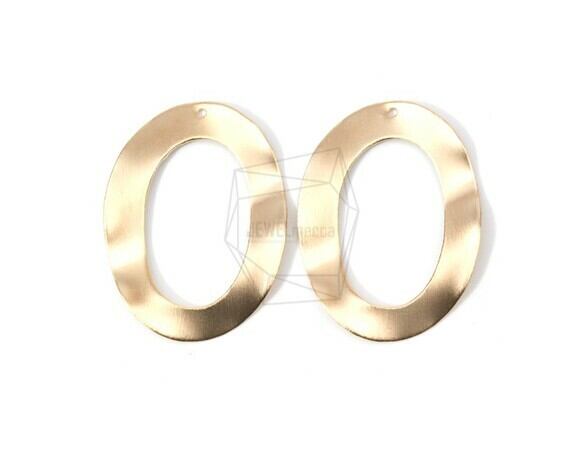 PDT-1341-MG/2PCS/Wavy Oval Frame brushed Texture Pendant/30mm X 40mm/Matte Gold Plated Over Iron