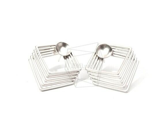 ERG-831-MR/2PCS/Multi-square Earring Post/25mm X 30mm/Matte Rhodium Plated Over Brass