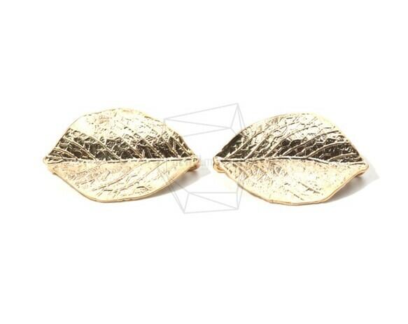 PDT-1614-MG/2Pcs-Leaf Pendant/ 20mm x 32mm/Matte Gold Plated Over Brass
